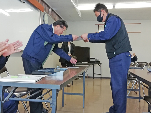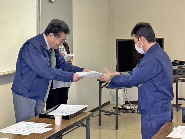 お取引先はもちろん、社員の皆さんとそのご家族あっての当社です。毎年恒例の「無事故表彰」「年間優秀賞」の授与式も行なわれ、一年を締めくくることができました。